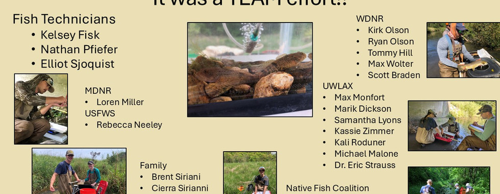 While Kyle is in the planning stages, Evan is working on wrapping up his research and is well into writing his thesis. Mottled Sculpin and Slimy Sculpin are both native to the Driftless Area. They are closely related species and telling them apart is for experts - like Evan (see below for a slide on how to tell them apart). Like most non-game fishes, we know less about them than we would like but finding funding for non-game species is always difficult. Below are some images from the Native Fish Coalition / UWL spring event to kick off Evan's research.